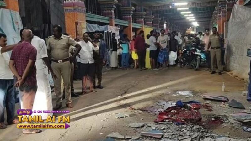 சனிக்கிழமை இரவு, கோவிலின் நுழைவாயில் மண்டபப் பகுதியில் ஏராளமான பக்தர்கள் தங்கி உறங்கிக் கொண்டிருந்தனர். நள்ளிரவு சமயத்தில், எதிர்பாராத விதமாக அந்த மண்டபத்தின் கான்கிரீட் மேற்கூரை திடீரென இடிந்து கீழே விழுந்தது.