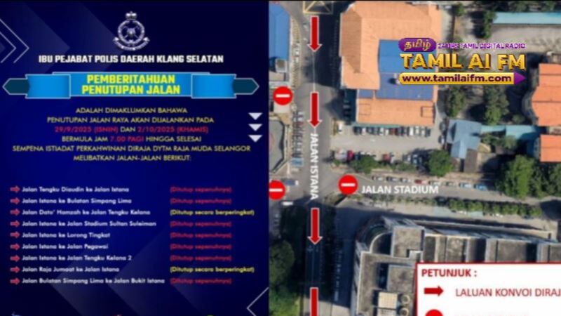 சிலாங்கூர் ராஜா மூடா திருமண விழாவை முன்னிட்டு – கிள்ளானில் பத்து முக்கிய சாலைகள் தற்காலிகமாக மூடப்படும்