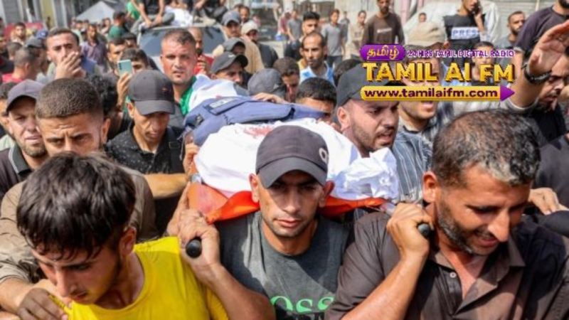 Mourners gather in Gaza for funeral of Al Jazeera staff killed by Israel