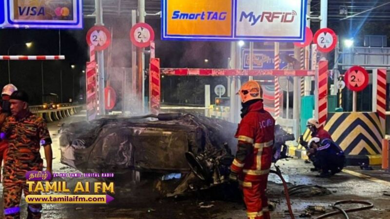 Honda Civic gutted by flames at Jitra Toll Plaza, two victims discovered inside as rescue teams respond