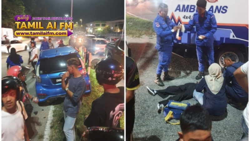 Child among four hurt as car runs red light, hits three motorcycles in Kuantan