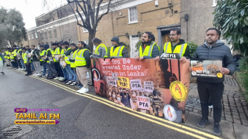 லண்டனில் கண்டனப் போராட்டம்: பயங்கரவாதத் தடைச் சட்டத்திற்கு எதிராகத் தமிழர்கள் முழக்கம்!