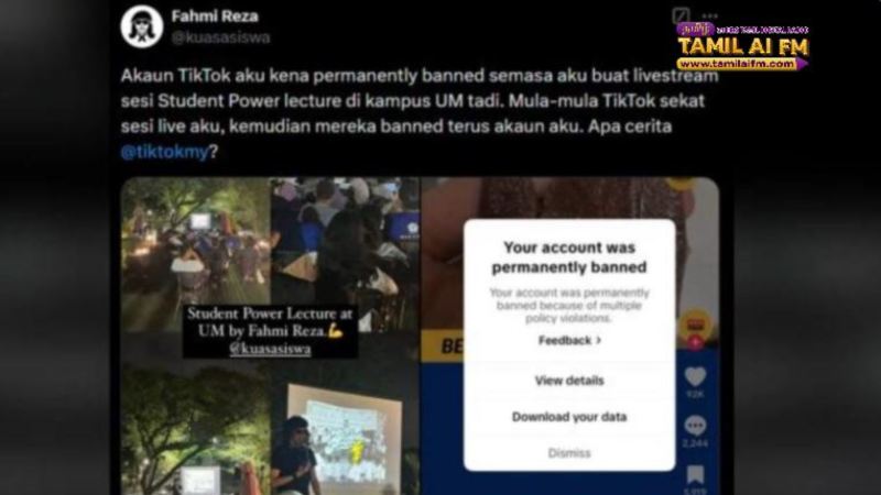 ஃபஹ்மி ரேசாவின் கணக்கை தடை செய்த டிக்டாக்