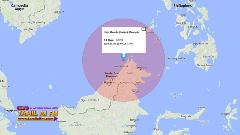 மலேசியாவின் சபா கடற்கரை அருகே 7.1 ரிக்டர் அளவிலான சக்திவாய்ந்த நிலநடுக்கம்